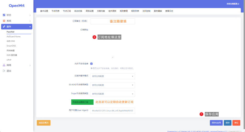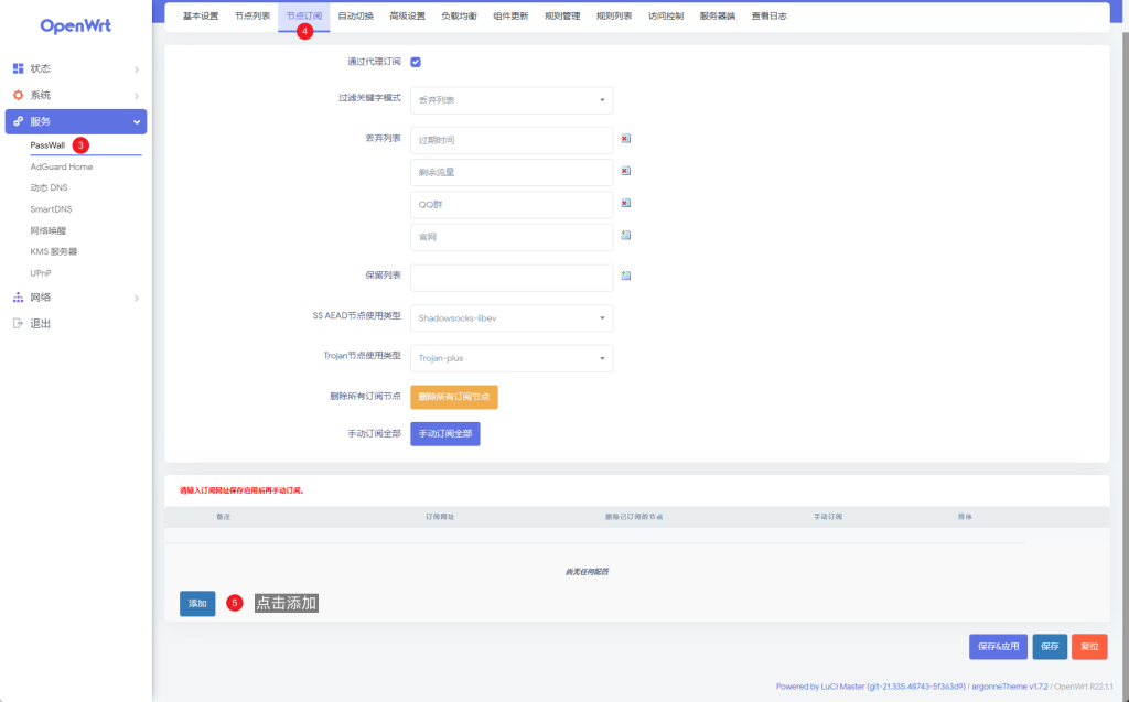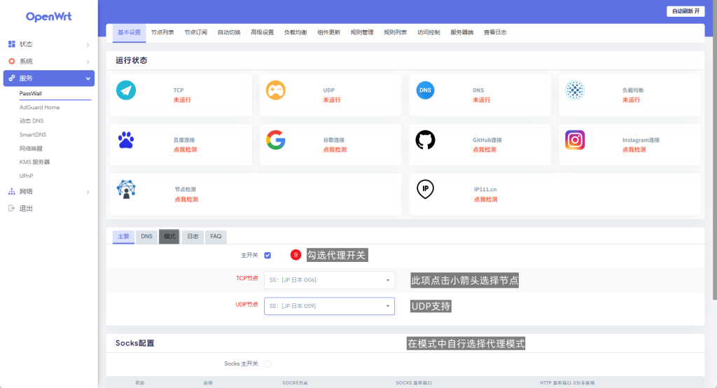 进入 OpenWrt 后台 →「服务」→「PassWall」